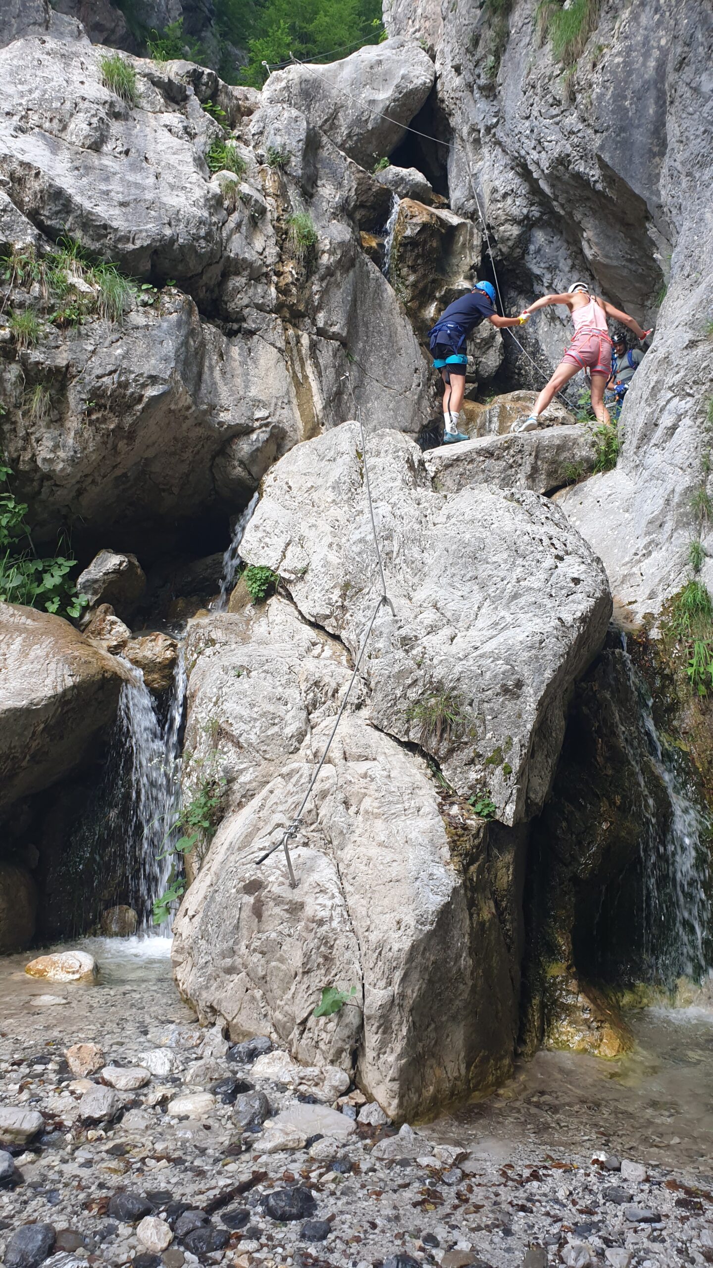 Pozno popoldne je mala Belka hitro zaspala, za njo je bil namreč dolg dan. Tudi tokrat je moj dragi prevzel prvo izmeno varstva. Sama sem si nadela plezalni pas in feratarsko opremo in napadla vertikalno ferato Jermn, ki je zbudila mišični spomin v mojih rokah in ravno toliko napumpala adrenalin v moje telo, da sem pretekla še vso pot navzdol in do apartmaja.