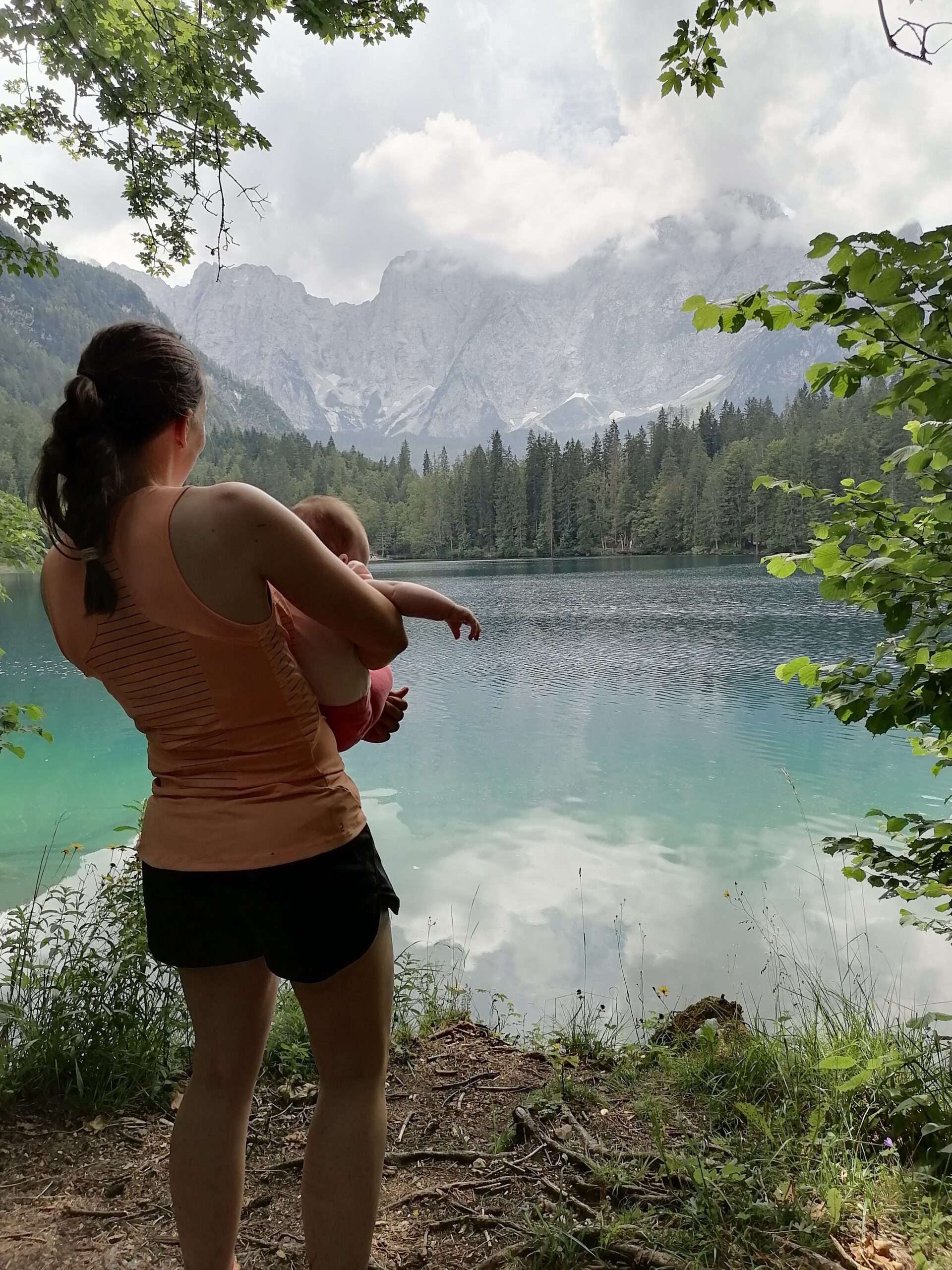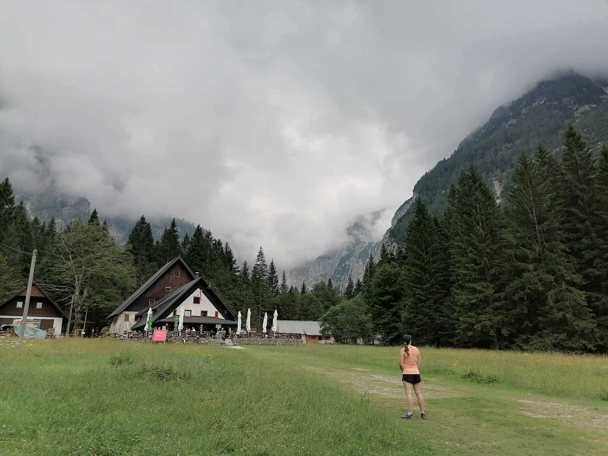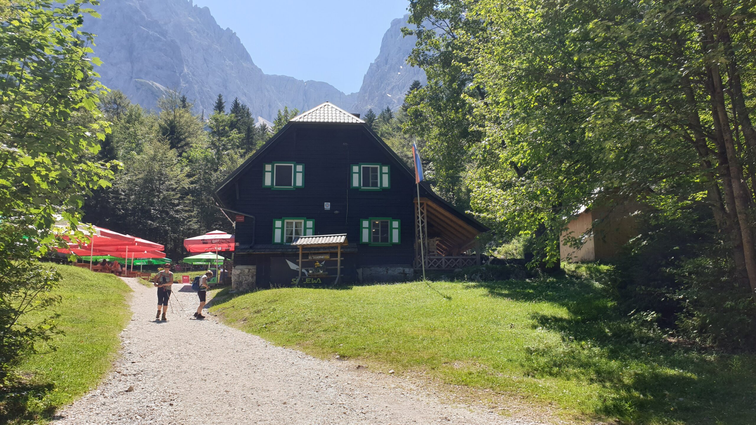Obiskali smo Kočo v Krnici. Pot smo pričeli v Kranjski Gori. Odločila sva se, da poskusiva z vozičkom, saj se mi je zdelo nošenje v nosilki ob takšnih temperaturah prav nehumano. Do koder pač pridemo, pridemo – na easy.