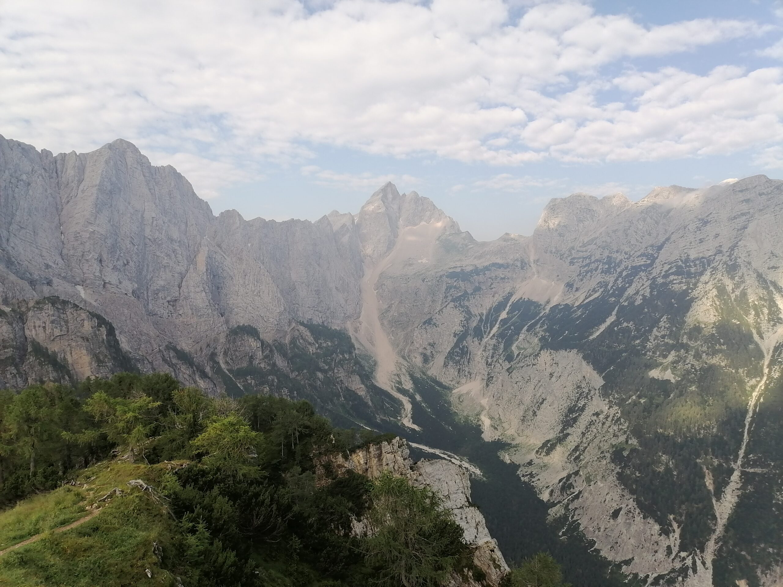 Že po prvem vzponu so se nam odprli čudoviti razgledi na sosednje vrhove. Na vrhu so se razgledi še bolj odprli – vse od Ponc, Jalovca, Mojstrovk in naprej do Prisojnika, Triglava in Špika.
