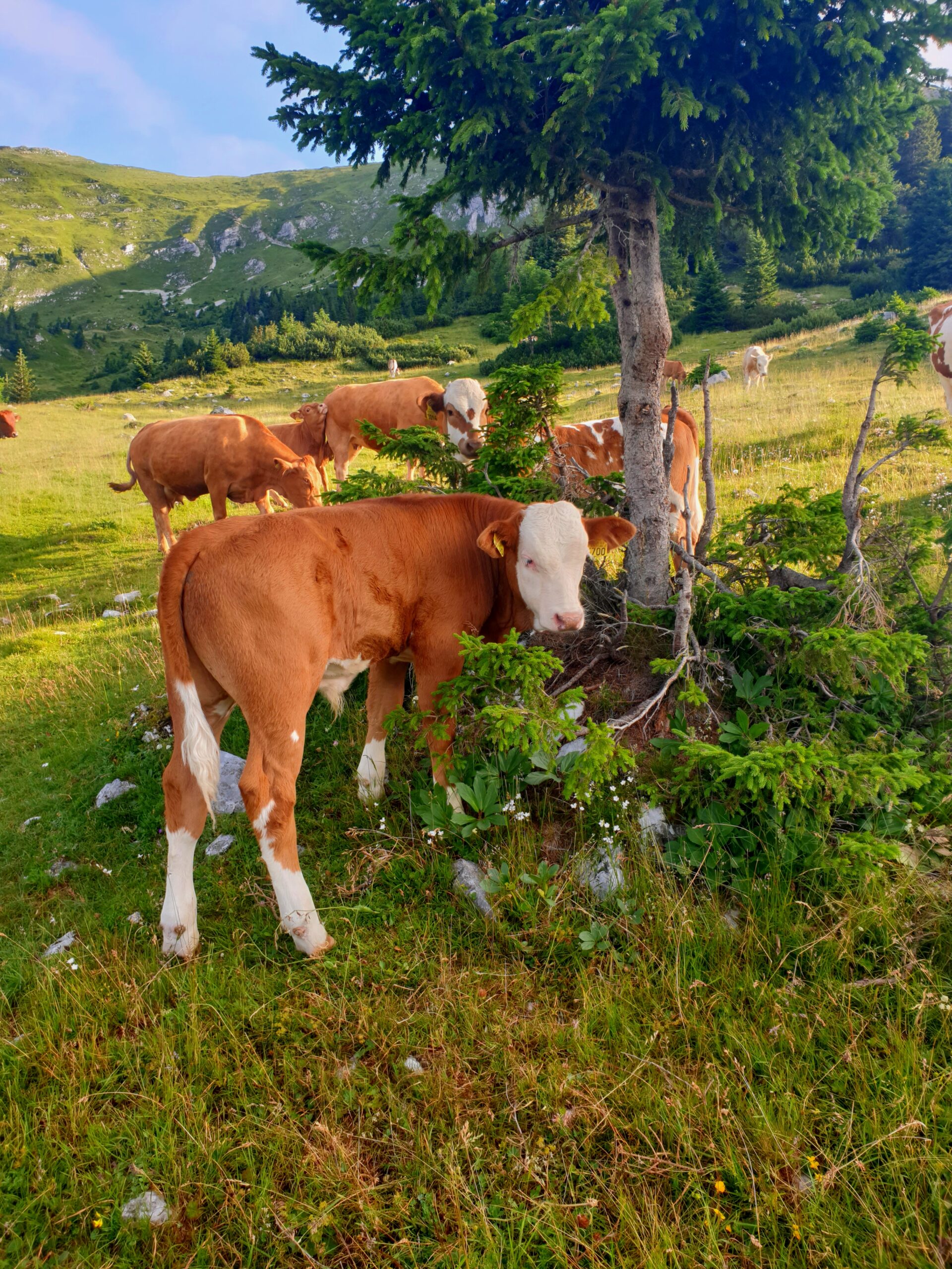 Potem je moja teta šla malo počivat na klopco, midva s stricem pa sva pogledala kravice in konjičke. Tudi midva sva se malo izmučila in sva legla na skalo. Ko smo se vsi malo odpočili, smo se odpravili proti našemu avtu.