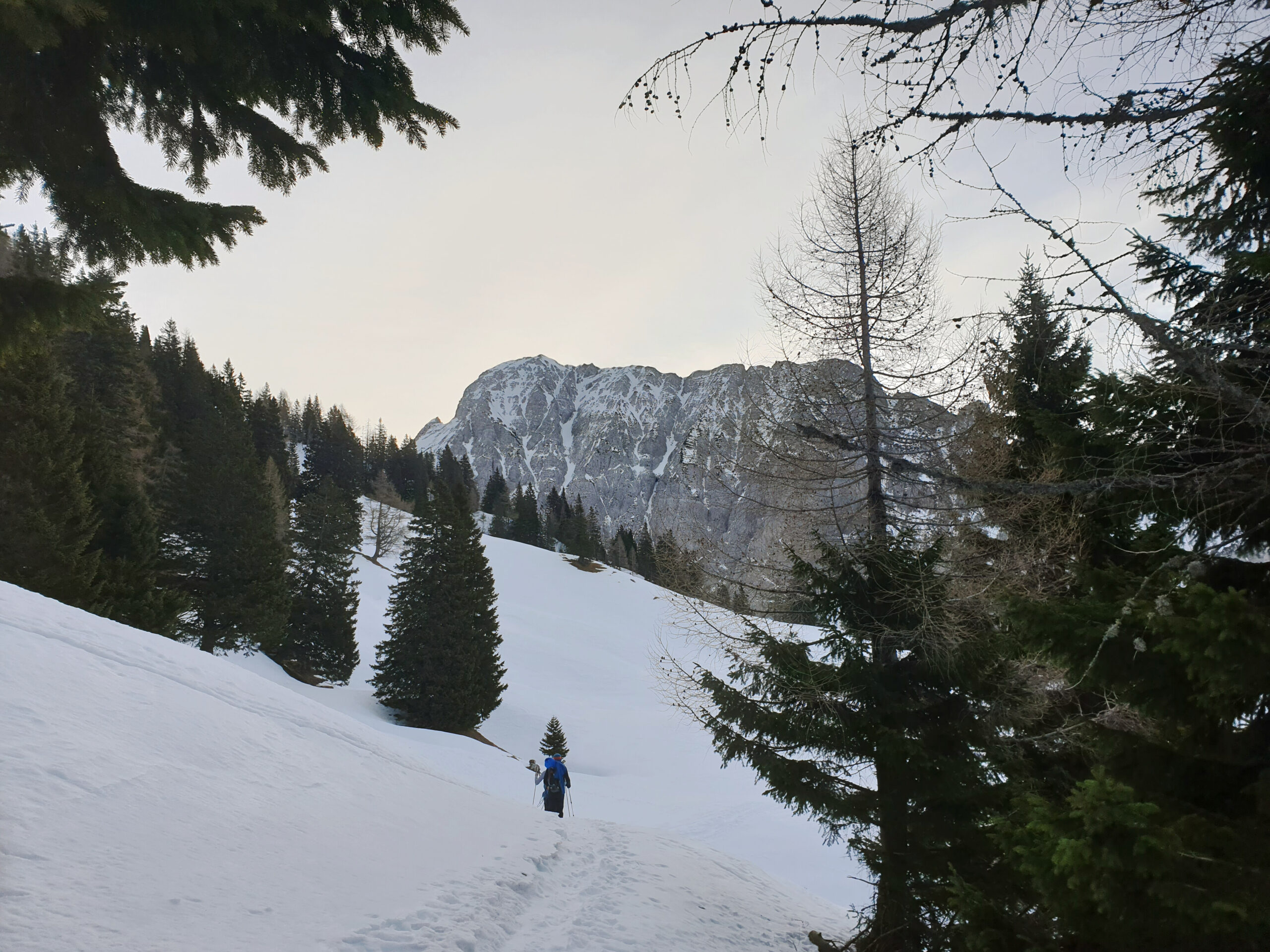 Kot po navadi, sem se tudi sedaj napotila proti gorskim vrhovom. V družbi treh sotrpinov smo ob pol petih že štartali od doma in se napotili proti Ljubelju. Od izhodišča nas je čakala dobra ura dostopa do 350 metrske smeri, ki se imenuje Prontarska v severnem ostenju Velikega vrha na grebenu Košute. Pred mano je bila prva zimska smer.