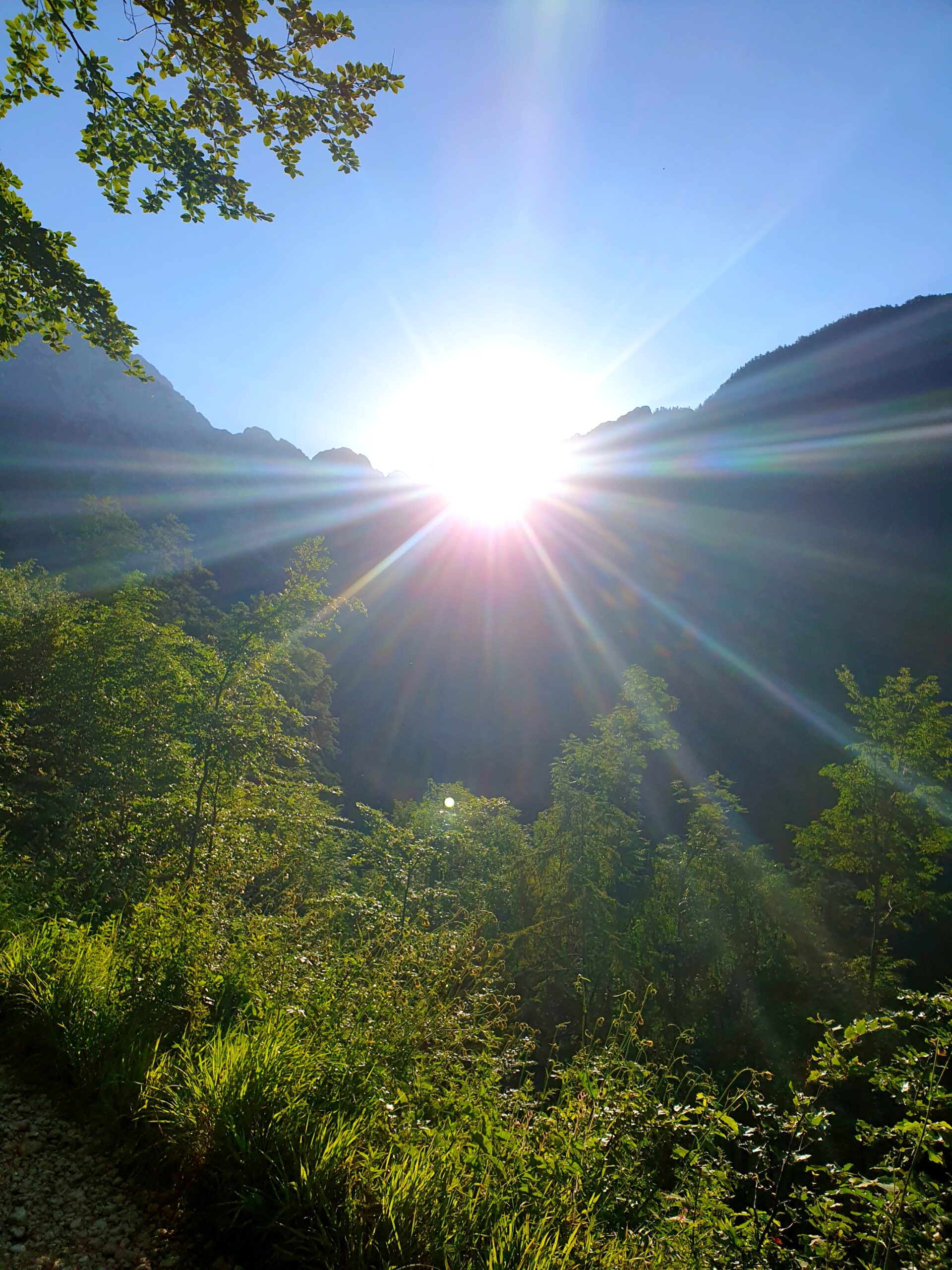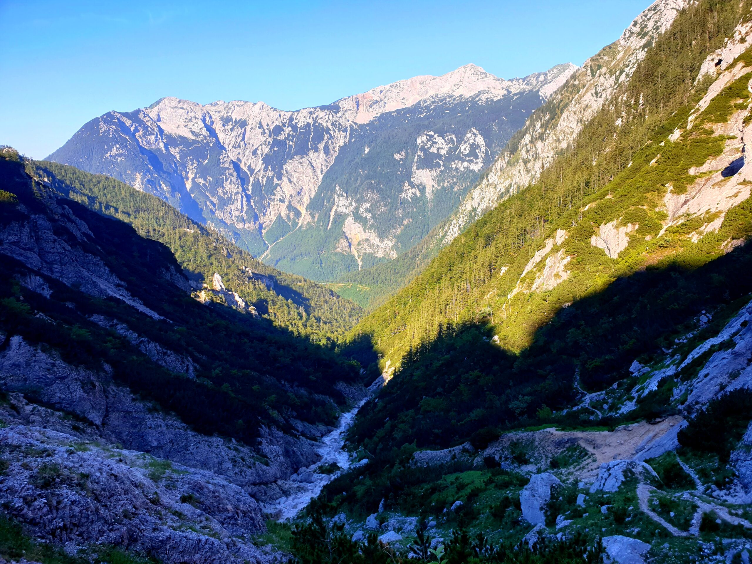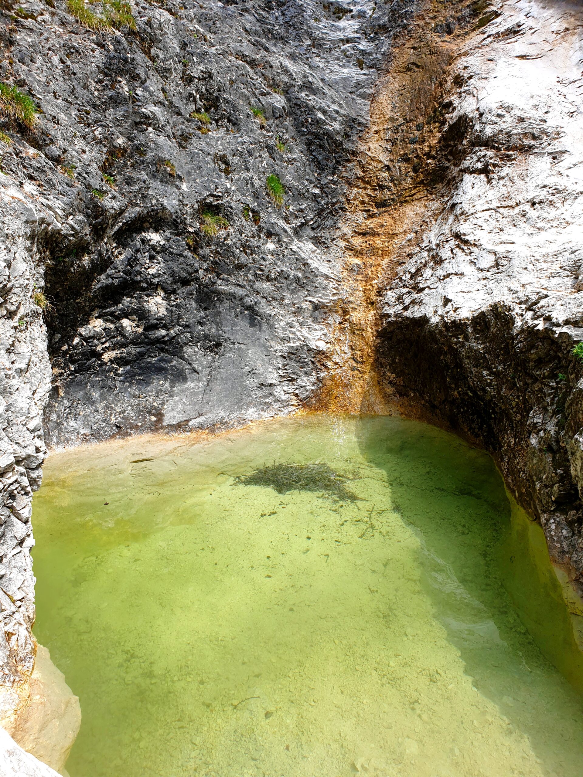 Za konec je sledil še sestop, kjer sem za rep skoraj prikrajšala gada. Ob tolmunčkih je sledila osvežitev in skok naprej k Jurju na velikanske šnicle. Seveda ob šniclu in pogledu na gorske velikane nisem mogla skriti navdušenja, da je bila tura uspešno speljana od A do Ž.