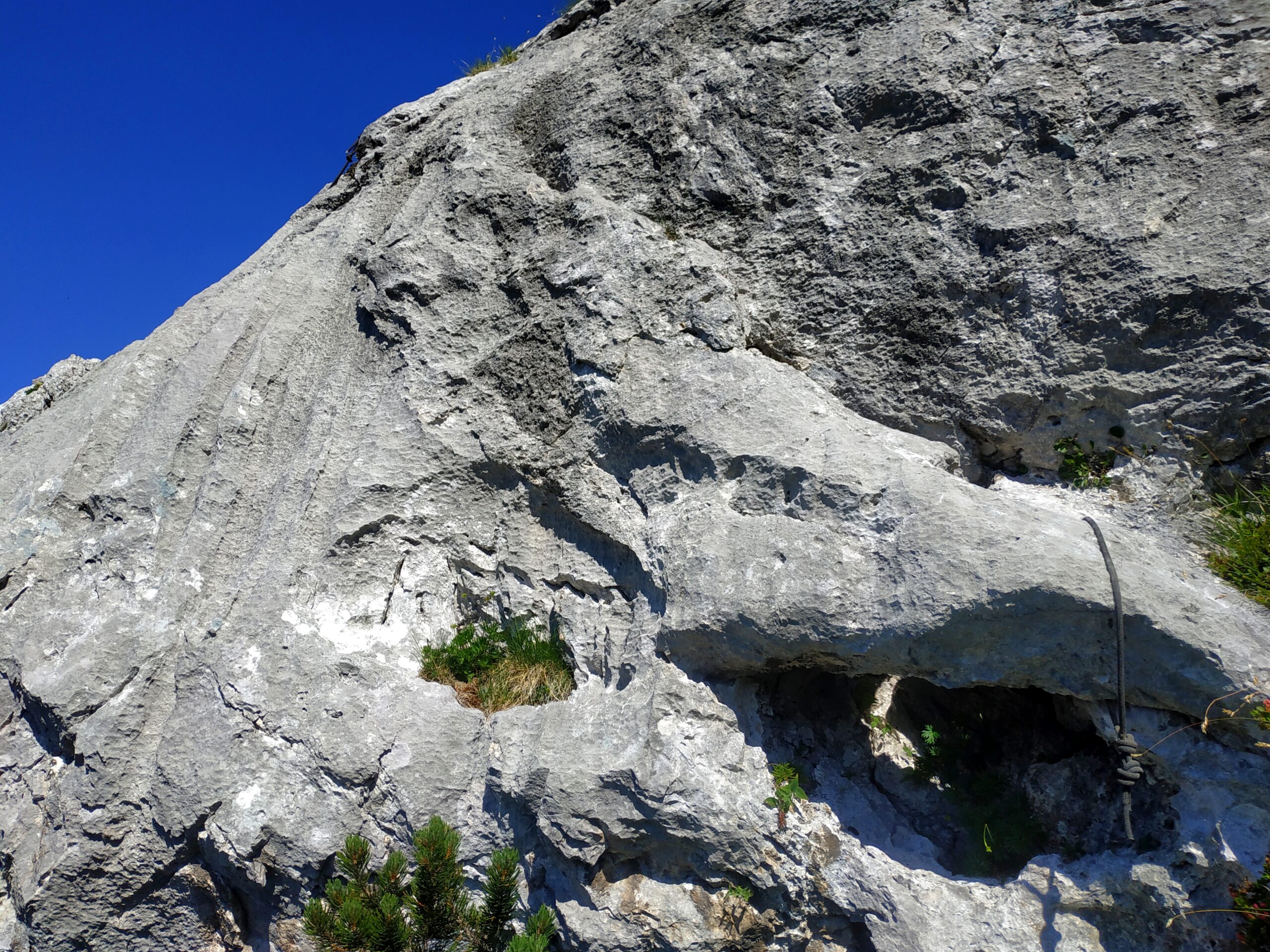 Zjutraj sva se s ferajnovskim kolegom odpravila iz Jermance proti Repovemu kotu. Kamniško-Savinjske Alpe sem začela že prav pogrešati. Do tolmunčkov z vodo sva se že pošteno zmarinirala v lastnem soku. Od tolmunčkov dalje sva sledila slabše uhojeni stezici v desno ter po krušljivi hudourniški grapi, kjer je bilo potrebno tudi malenkost poplezati, na sedlo ter proti južnim stenam Staničevega vrha. Po dobrih dveh urah mariniranja sva končno prišla do začetka smeri, ki se začne pri votlini, označena pa je tudi z zapisom na skali.